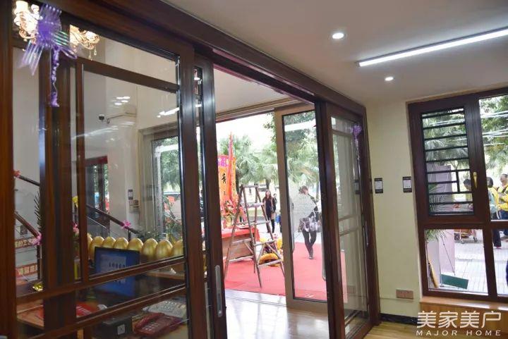 新店位于江门市蓬江区迎宾大道,门头大气沉稳,前台、背景典雅时尚,店内精品门窗琳琅满目,喜庆热闹的氛围布置,让整个店面容光焕发,为江门市的消费者朋友打造了一个优秀的门窗选购环境。