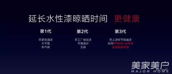 第三代油漆工艺,告别了第一代油漆工艺的粗糙(第一代油漆工艺在客户家里进行,满房间都是油漆味道,涂刷也不够平整);告别了第二代油漆工艺的冰冷手感(第二代油漆工艺在工厂进行,平整度、观感和环保性都很好,但手感有些冰冷),采用环保贴膜+水性漆的工艺,使油漆晾晒期得到极大延长,更健康、更环保、更放心,漆面喷涂更为细腻,触感如婴儿肌肤般温和舒适。