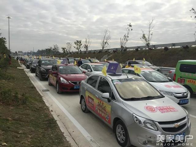上午7时许,部分车队在茂名市官渡公园前集结,在启动仪式上,茂名市副市长李多民发表讲话并主持鸣笛发车仪式,车队沿茂名大道、茂高快线浩浩荡荡驶向高州南互通进入汕湛高速,并在这里与另外300多台汽车汇合后缓缓驶上高速公路。汕湛高速公路上一众车辆插着彩旗有序前行,在连绵十多公里的车龙中,标识“茂名市门业协会”的车队特别引人注目,为活动添色生光。