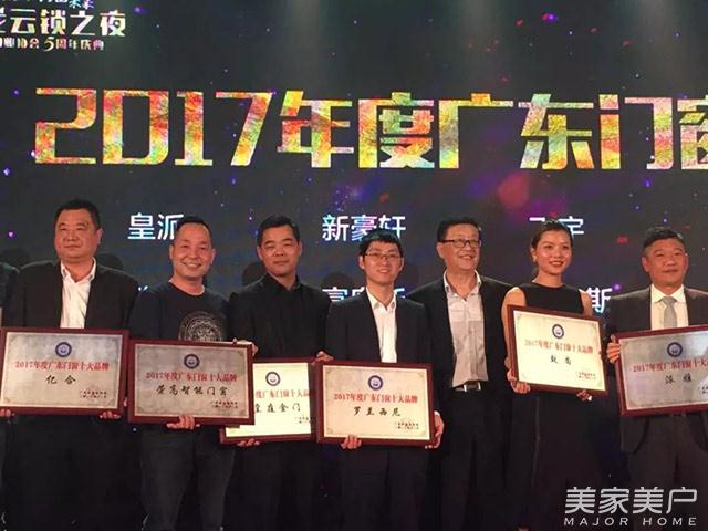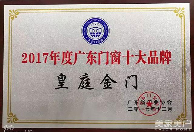 热烈祝贺皇庭金门荣获2017年广东门窗十大品牌!