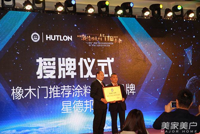 关润开会长为橡木门推荐涂料优秀品牌星德邦颁发荣誉牌