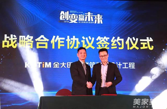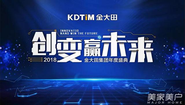创变方能鏖赢新机,创变方能通达未来!2018年1月12日,广东金大田家居股份有限公司在山清水秀的佛山祈福仙湖酒店召开2018年会盛典,来自全国各地的近六百位产业链精英合作伙伴参加了本次年度盛会。在友好、融洽、积极、活跃的氛围中,会议全面回顾、总结了的2017年产业合作下的新商业模式推行中取得的可喜业绩,对过去一年表现优秀的产业链合作伙伴进行了表彰。年会上,金大田重点对2018年的一系列创新、变革的管理经营举措、品牌战略定位和新品规划等进行了部署与发布;同时,金大田也在本次年会与佛山农商银行、美的集团及广东联筑、广东荣业消防工程公司等产融单位签订了“2018战略合作协议”,为2018的创变和高速发展之路锦上添花!