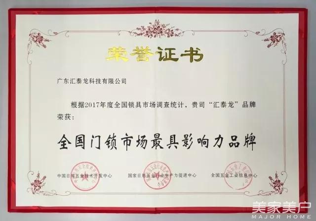凭借一系列优秀的智能产品,“汇泰龙”品牌在消费者中口口相传,影响力不断提高,2017年荣获“全国智能门锁最具影响力品牌”等荣誉。