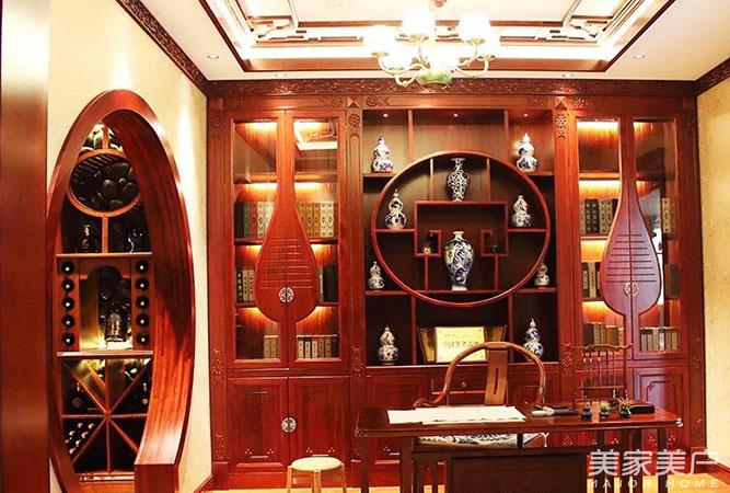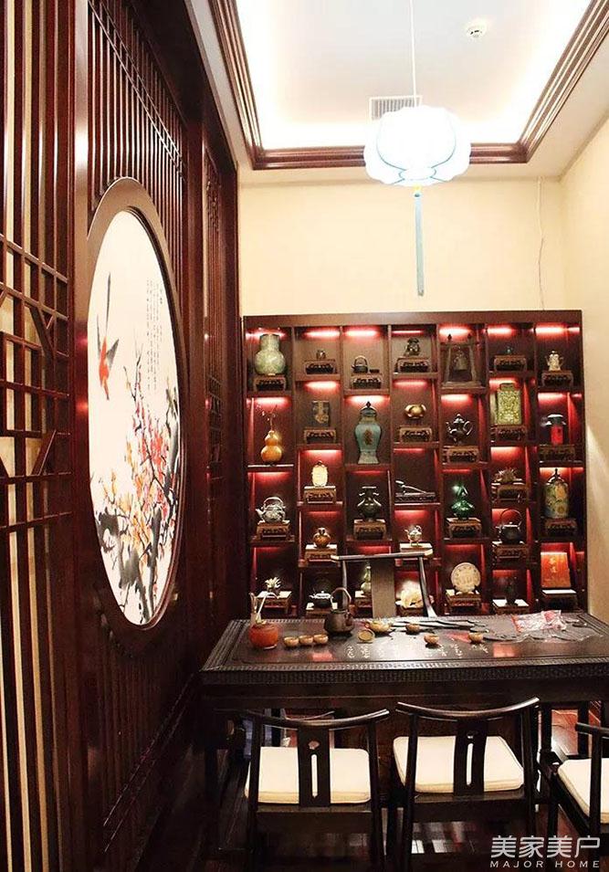 优雅庄重中式馆:以浓烈而深沉的色彩装饰,费心搜罗的瓷器古董,华丽精致,富于变化,共同沉淀着中国传统美学的审美精神。外在端庄,尽显内涵。
