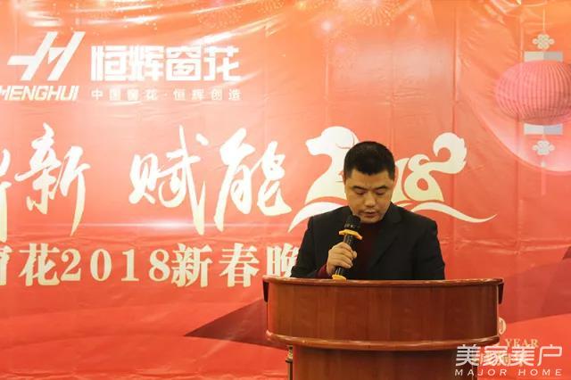 年会开始,由恒辉窗花公司总经理周杨致辞。首先,周杨先生肯定了恒辉窗花公司在2017年度的工作成果,并且感谢公司全体同仁的努力及拼搏。与此同时,他还做出了2018年新规划。