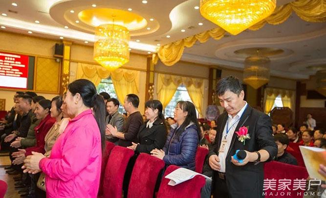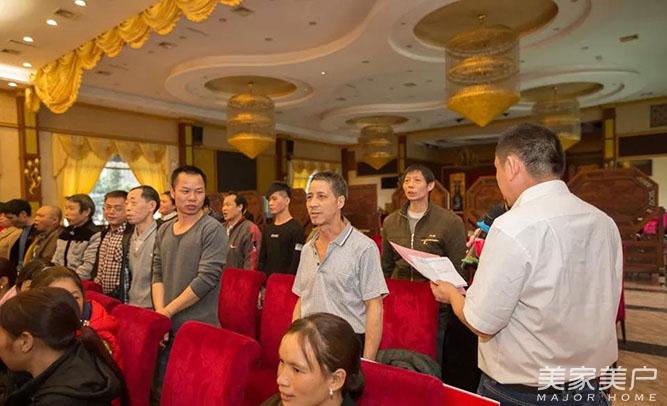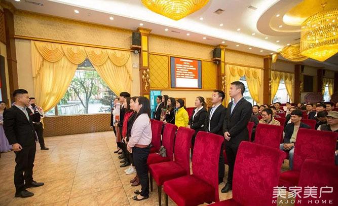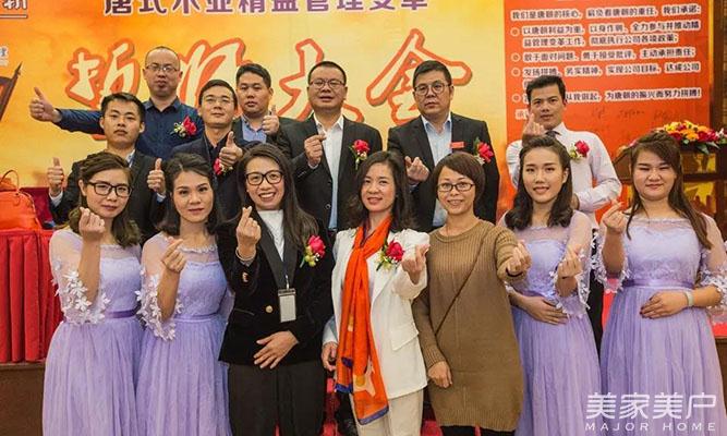 会议的第三部分:凝聚团队力量,激情成就梦想,共创、共嬴、共享是唐朝的经营理念。唐式木业总经理谢总上台宣读精益管理变革推进小组成员任命书