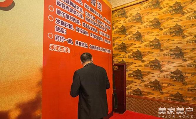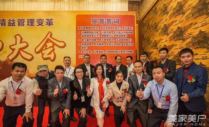 唐式木业总经理谢总以及唐式木业副总经理陈君带领唐朝精益管理变革小组成员(唐朝各部门主管)于台前宣誓并接受任命书