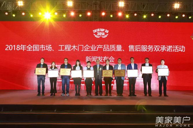 作为国家九部委联合批准的保留项目,“全国市场、工程木门企业产品质量、售后服务双承诺活动”历经十三年,形成了行业极具标志性的品牌活动,通过树立企业的品牌形象,在全社会倡导和弘扬中国的“工匠精神”,引领行业规范性发展,为行业品牌建设做出了重要贡献。最激动人心的发布会环节,2018年木门双承诺活动企业榜单隆重揭晓,在现场所有嘉宾和媒体的注目下,获奖企业代表一一上台领奖,共享欢庆时刻。