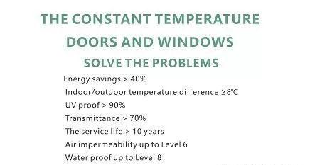 恒温门窗玻璃节能套装采用本公司联合研发的一种具有特殊光学性能的纳米节能材料。在保证良好的可见光透光率的同时具有优异的阳光控制和保温隔热特性。无需外界能源即可根据环境温度变化自行调节,自然起到"冬暖夏凉"的作用。只需三小时,给您一个健康舒适的家!