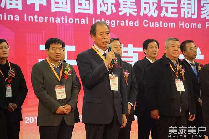 ▲ 中国林产工业协会秘书长石峰在开幕式上致辞,对参与展会的嘉宾与媒体表示感谢,同时谈到本次展会包含门类最多,规模最大,并对全屋定制的未来很看好。
