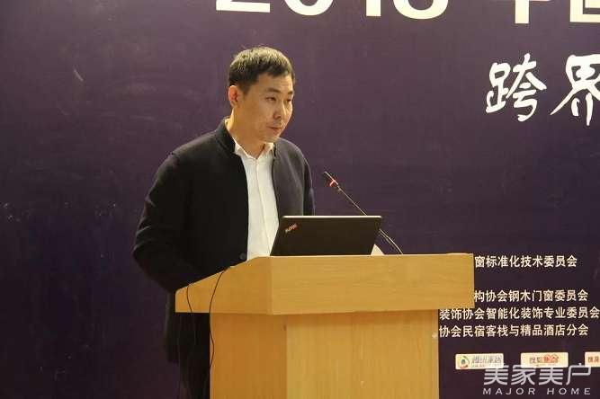 ▲ 中国室内装饰协会智能化装饰专业委员会主任金永涛先生作《智能化装修和门的关系》主旨演讲
