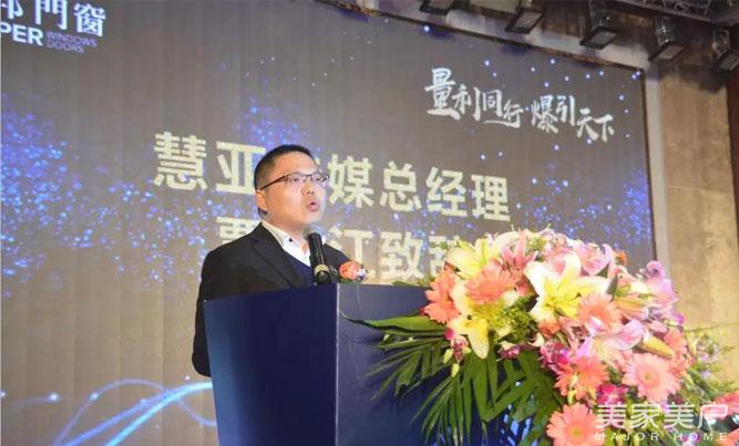 慧亚传媒总经理覃金江发表致辞,就当下铝门窗行业现状作了详细的解读,肯定了其邦门窗在行业中的引领作用,为行业走向品牌化、高端化做出了相当不错的成绩。最后覃总对其邦今后发展送上了最真挚的祝福。