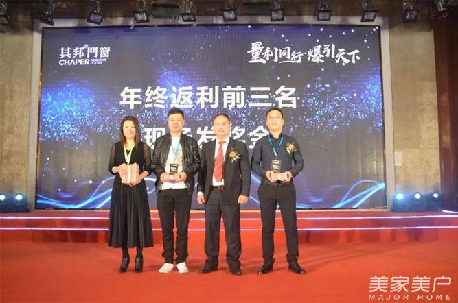 其邦门窗的成就大家有目共睹,而这些成就离不开经销商家人们的共同努力,荣誉的勋公章有其邦公司的一半,也有经销商家人的一半。其邦门窗对2017年做出重大贡献的经销商给予肯定并颁发荣誉奖杯以及奖金,让我们对获得荣誉称号的经销商表示祝贺。