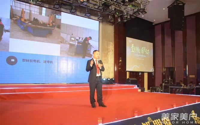 其邦门窗董事长黄东建作2017年工作报告以2018年工作规划。2017年其邦门窗为今后更好占领市场作了众多改变,黄董从四方面进行工作总结,一、厂区搬迁,一年时间,其邦从搬迁到二期厂房投产正式使用,生产线不断完善;二、新产品研发步伐加快,门窗主导产品以及辅助产品不断推向市场并取得良好反馈;三、产品升级,紧跟市场变动方向,对产品作出全新升级,不断完善产品质量与外观;四、公司内部管理完善,ERP系统的引进、升级改善生产线流程作业,聚邦管理公司进驻科学化管理公司结构。