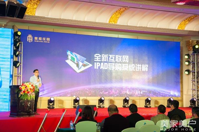 推搜网络科技有限公司技术总监胡总则上台作全新互联网下皇庭庄园iPad导购系统的讲解。皇庭庄园导购用的是iPad。为什么会用iPad,而不是使用其他品牌?这跟皇庭庄园的定位有关。iPad给人的感觉是高贵,符合皇庭庄园高贵的气质。用iPad先下载皇庭庄园软件,进入到皇庭庄园产品的介绍页面,可以查看木门、整装的产品画册。通过VR虚拟化功能进行360°展厅,给客户全新的感受。同时,胡总也作了皇庭郡合金门窗的系统简介。