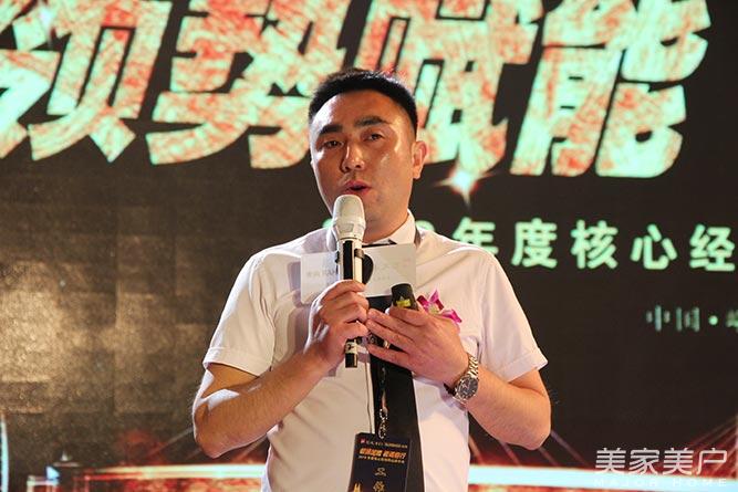 随后,艺龙木门运营总监钟华彬作了艺龙木门2018年度品牌营销战略报告。报告以大会主题为中心思想,简单介绍了品牌的发展历程,并宣布“艺龙”与“尚集”两大品牌独立运营的战略方针。同时,详细讲解了营销赋能、产品赋能、技术赋能、服务赋能等相关问题。并结合公司网站,对“艺龙”与“尚集”两大品牌进行了综合讲解。生产总监许文新在会上作了公司2017年生产工作回顾与2018年生产工作的部署规划。酷家乐软件公司培训总监盘醒结合软件,为参会的经销商代表讲解了场景体验式新零售的运用。