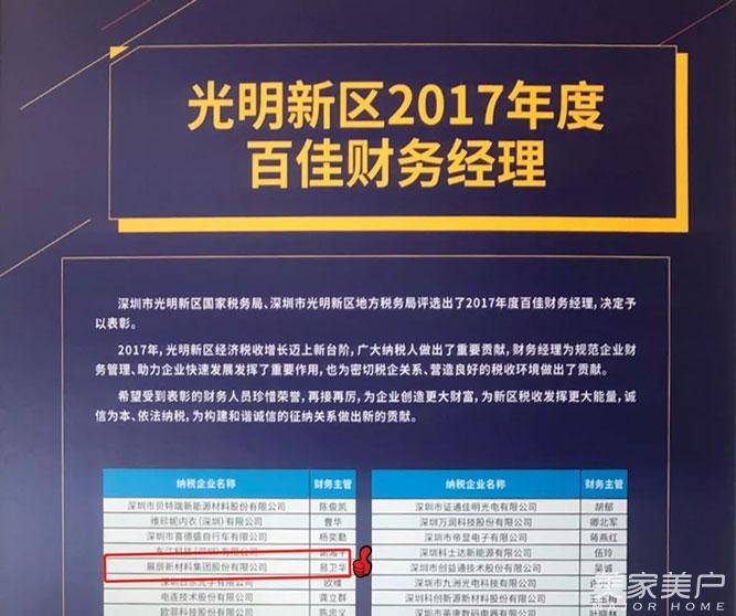 近日,光明新区国、地税局联合对本区企业纳税情况展开表彰评比。我司展辰新材料集团股份有限公司凭借依法诚信纳税获得“光明新区2017年度纳税50强企业”、“光明新区2017年度百佳财务经理”两项荣誉。