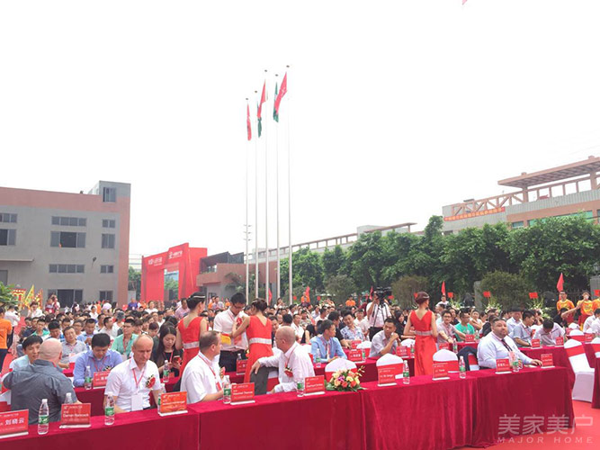 开业当天,美国哥伦比亚博士兼复旦大学教授晏湖根、德国格屋集团总裁Kaan Guclu、德国恩信格工程塑料有限公司总裁Mr.Danger、金田豪迈木工机械贸易有限公司德国公司中国区销售负责人Eberhard Schlee、德国蓝帜刀具公司全球市场经理Hoechtel Thomas先生、德国Klaese软件国际部销售副总裁Bernhard Hanmbrugge、澳大利亚AUTOSLIDE自动门公司总裁Darren Hancock、德国威力木业技术有限公司高级项目经理刘晓云、肇庆市大和铝制品有限公司董事长古家和、门协会秘书长徐生等参加了开业庆典活动,亲眼见证了这一盛事。