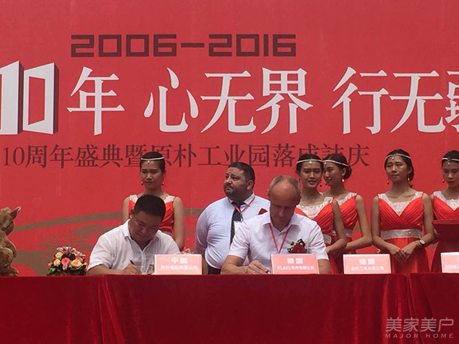 仪式上,钱竺林总经理代表原朴企业分别与德国G-U集团、德国恩信格工程塑料有限公司、金田豪迈木工机械贸易有限公司、德国蓝帜刀具公司、德国Klaese软件公司、德国威力木业技术有限公司、澳大利亚AUTOSLIDE自动门公司共同签订战略合作协议。