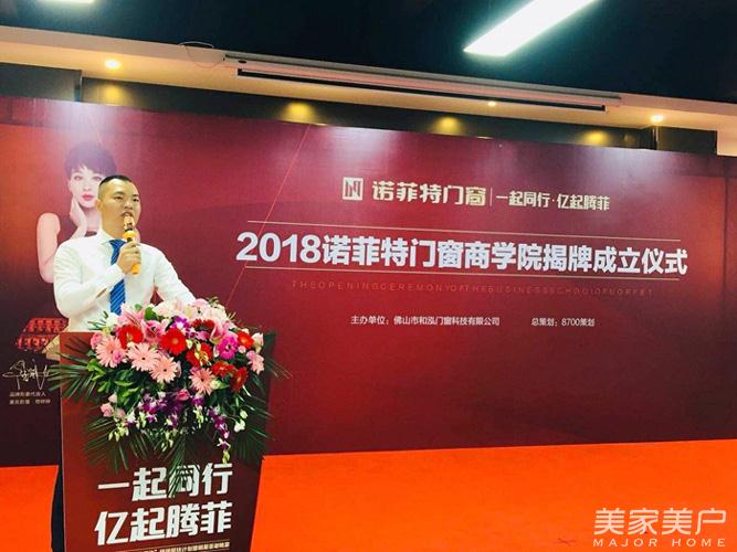 在活动热烈激昂的气氛下,诺菲特董事长余永山上台致辞。余董致谢了在场所有来宾及经销商家人们,并且阐述了诺菲特商学院的今后定位与发展愿景:人才炼金炉、营销武器库、知识孵化器三大系统。余董还补充道商学院校训为“思变求进,开拓创新”,以此校训鼓励所有员工及经销商家人们思考、创新,放飞梦想起航!