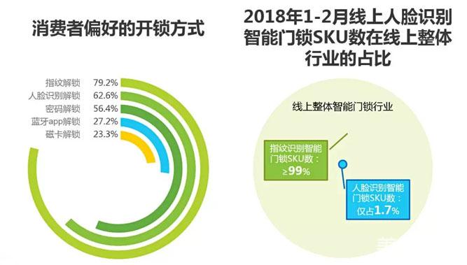 分别有79.2%和62.6%的消费者偏好指纹解锁和人脸识别解锁,便捷性和安全性较高的生物识别解锁赢得消费者偏爱。指纹识别技术已在智能门锁产品中普及,但目前人脸识别技术的应用率较低,需进一步在智能门锁产品中落地。