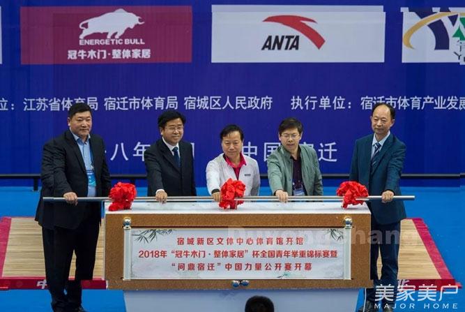 2018年4月28日,由国家体育总局举摔柔运动管理中心、宿迁市人民政府主办,江苏省体育局、宿迁市体育局、宿城区人民政府承办的“冠牛木门.整体家居”杯全国青年举重锦标赛在宿城新区文体中心隆重开幕。
