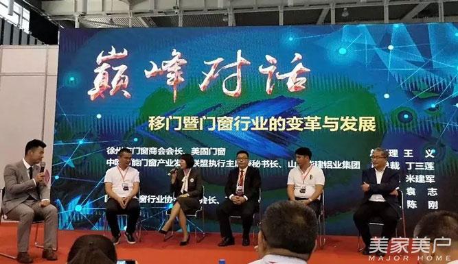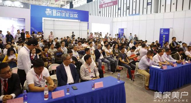 在下午14:00,4号馆论坛区的《2018全国移门暨门窗行业领袖紫金峰会》内容更是精彩绝伦。会上各位领导的想法激情碰撞,引起了现场一阵又一阵热烈的掌声。