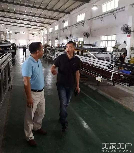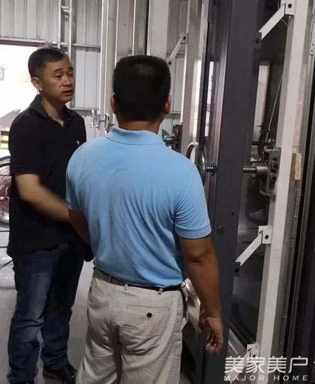 2018年7月2日,冠业门窗总部迎来了一位尊贵的客人:冠业门窗十三年老用户刘国新先生(图中左一)。