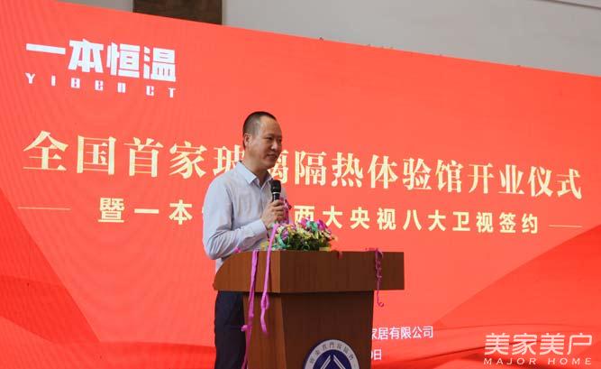 福临门世家门窗董事长梁晓东在“一本恒温”全国首家玻璃隔热体验馆开业庆典仪式上说:“今天是‘一本恒温’全国首家玻璃隔热体验馆开业庆典的好日子,首先我代表公司向各位领导和各位朋友的光临表示热烈的欢迎和衷心的感谢!感谢你们一直以来默默的关注、坚定的支持和饱含希望的期待!2017年10月18日,习近平同志在十九大报告中指出,坚持人与自然和谐共生,提出著名‘金山理论’—‘绿水青山就是金山银山’,将‘节能环保,低碳生活’的理论提升到国家层面高度。‘一本恒温’的环保恒温技术历经15年的深度市场耕耘,响应时代需求,通过独特刷新工艺,解决城市恒温需求,拉开了‘节能中国行’的序幕。