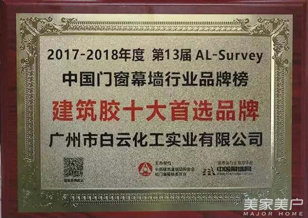 荣登第十三届中国幕墙网年度大型读者调查“建筑胶十大首选品牌”榜首、荣获“2018中国房地产开发企业500强首选供应商(密封胶类)”、“金玻奖-玻璃化工辅料影响力品牌”、“中国氟硅行业领军企业”、“中国氟硅行业产业技术进步奖”等殊荣
