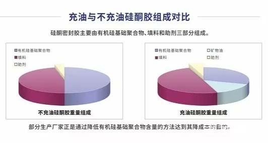 值得注意的是,“充油胶”无疑是劣质胶,但是劣质胶不局限在“充油胶”,现在也有厂家会增加填料含量来降低有机硅基础聚合物含量。