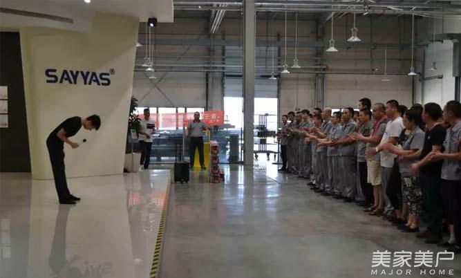 热血、汗水、激情;计划、纪录、产量。森鹰窗业,在7月26日到11月5日三个月时间内,要完成工程及零售、共计17.6万平方米的木窗。虽然没办法绕地球几圈,但绝对是木窗界的天文数字!曾经月产4万平米的纪录,就要在这次动员大会后成为历史——月产近六万米,产值近两个亿,对中国百分之九十的窗企来说,几乎相当于一年的产量和产值!