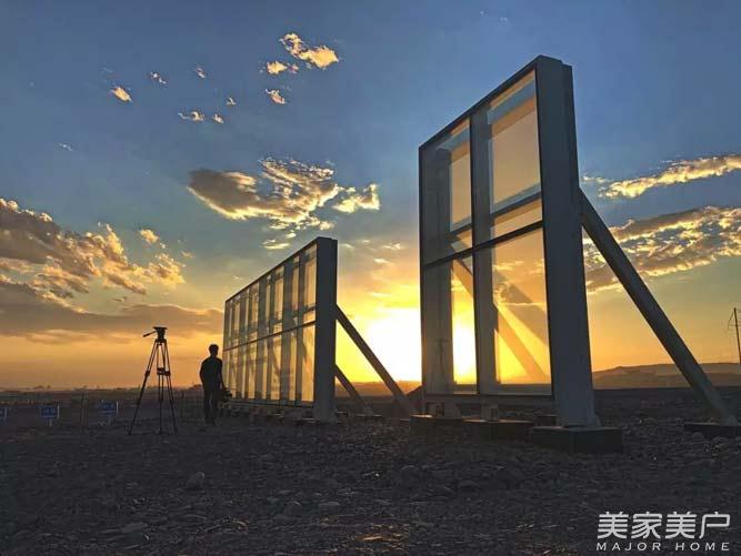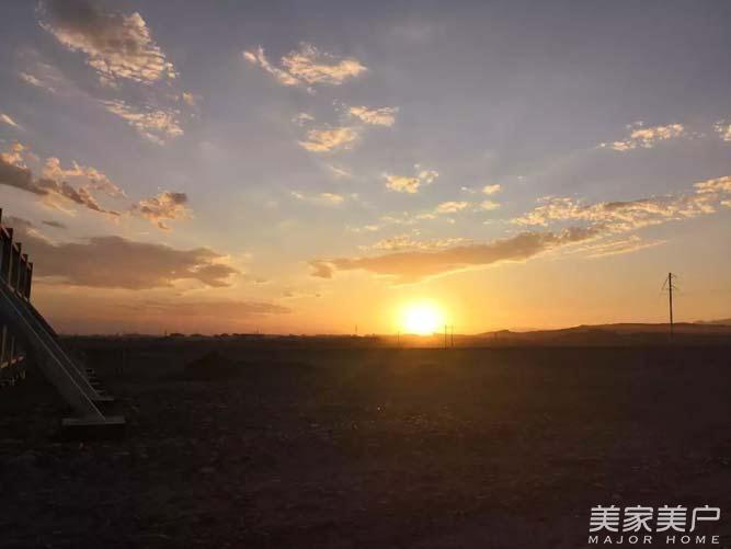 于是放下行囊,我们便开车去到位于火焰山脚下的密封胶50年极限测试自然暴晒场。由于新疆太阳下山比较晚,接近北京时间晚上10点太阳才落山。到了现场规划了拍摄方案,看到了我们的自然暴晒实体试验幕墙,正好遇上即将下山的落日红霞,自然激发了导演和摄影记者的拍摄灵感,于是一直追拍至太阳下山,才有了下面的炫丽美景。