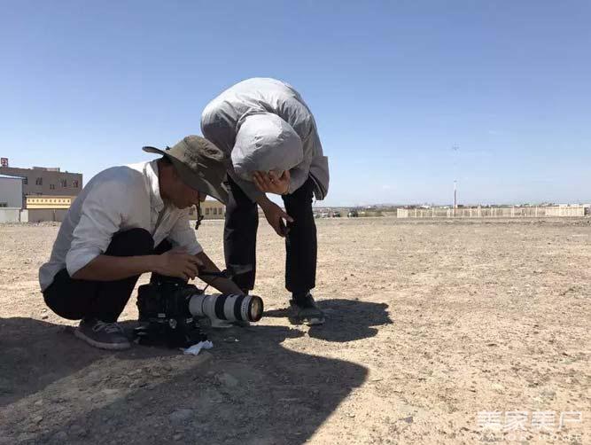 如果不是有特别的任务,白天大部分人都躲在室内不出去。而我们的导演和摄影记者们,不畏酷热,坚持户外拍摄8小时,为的是一个个美仑美奂的镜头,一个个真实感人的素材。为了真实呈现新疆的酷热,为抓拍地面的热浪,梁记者更是不惜蹲在地上进行拍摄。虽然大家出发前涂了厚厚的SPF50+的防晒霜,穿了防晒衣,但是还是不太管用。