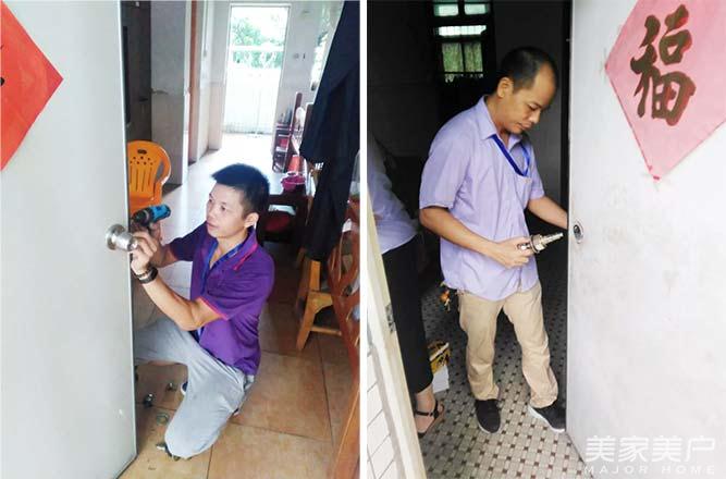 星佰汇门窗公司职员免费更换门锁66把,免费维修更换铝合金门28套,确保每一扇门开关顺畅正常使用。