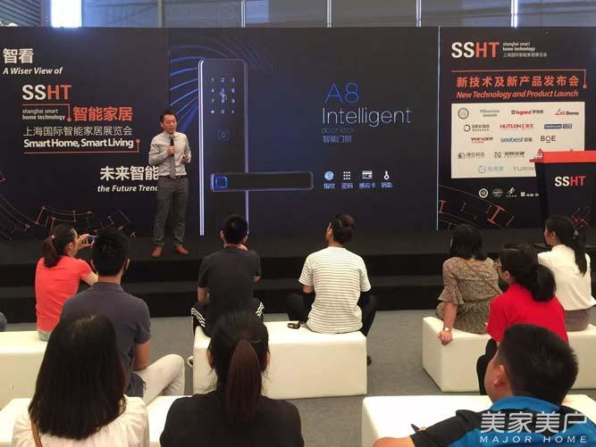 发布会上,黎总向智能家居渠道商介绍汇泰龙的发展历程以及软硬实力,并在会议上发布汇泰龙2018年新品“一步即开”A8智能锁以及屏下指纹U系列双子星。
