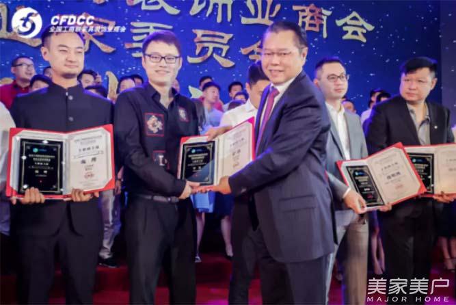 全国工商联家具装饰业商会会长丁佐宏(右三)为“继创者”颁发青委会会员证书