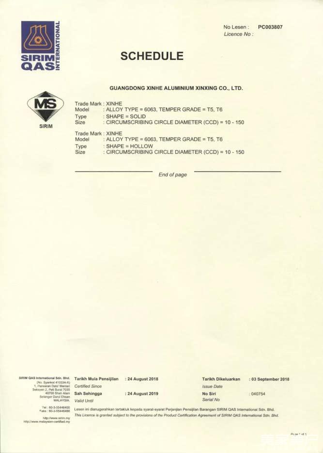 新河铝材通过SIRIM认证,助力马来西亚国家新地标