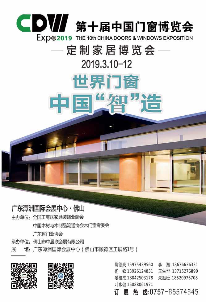 第十届中国门窗博览会将于2019年3月10日-12日在广东(佛山)潭洲国际会展中心隆重举行,期待您的参与!