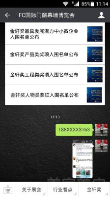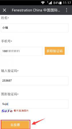 步骤四:将截图+投票手机号发送至博览会官方微信公众平台(微信公众号:fenestration-china):