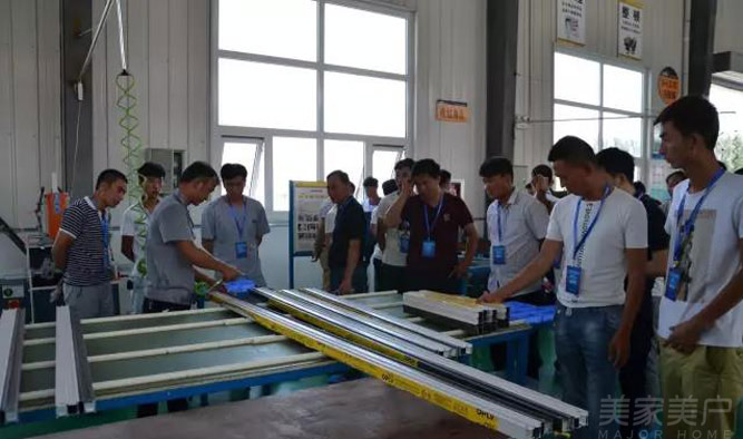 客户现场查看门窗的加工制造工艺