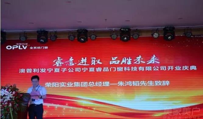 在午宴开幕上,荣阳实业集团朱鸿韬总经理发表了热情洋溢的致辞,向参加开业庆典的各位贵宾和工作人员表达了诚挚的谢意,同时也对澳普利发立鼎西北、勇创古丝路辉煌的美好愿景寄予殷切期望;宁夏睿品门窗科技有限公司马旭宝总经理发表讲话,他表示有信心和信念将澳普利发打造成为西北首屈一指的集门窗生产加工及销售服务为一体的门窗界翘楚!