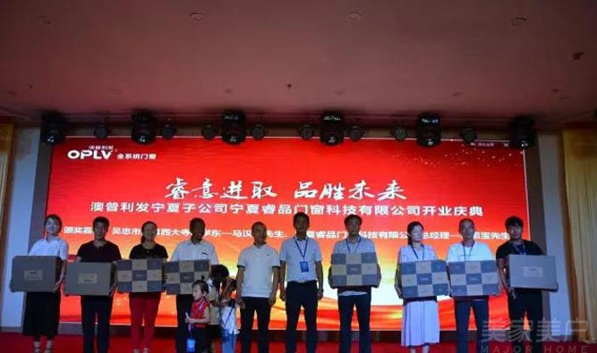 抽奖环节颁奖至此,澳普利发宁夏子公司的开业庆典已圆满成功!创新是企业的动力,品质是企业的命脉,诚信是企业的基础。未来我们将进一步深化产业结构的调整和产品结构的调整,把澳普利发品牌做大做强,继续秉承“精工理念,航天品质”的生产制造要求,为西北消费者提供质高价优的好门窗,所有澳普人将勤耕不缀,矢志不移,再续古丝路辉煌!
