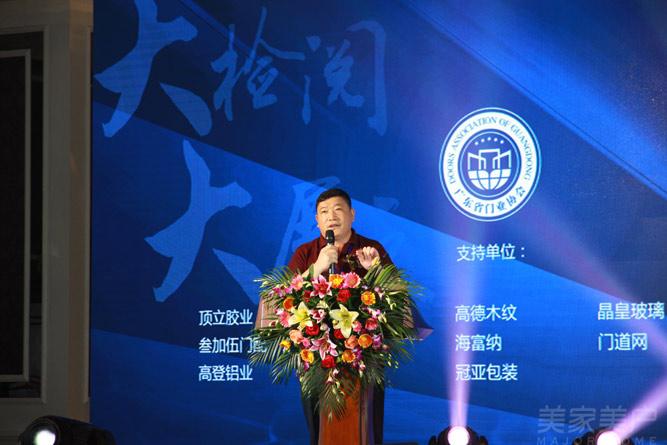 7月4日,冠牛木业董事长庞军在广东省门业协会换届大会上演讲