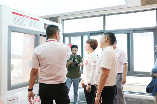 诗尼曼副总裁黄伟国陪同周洋参观生产车间