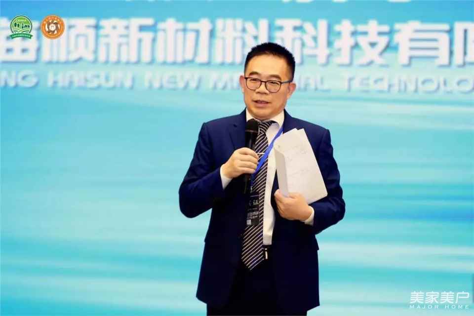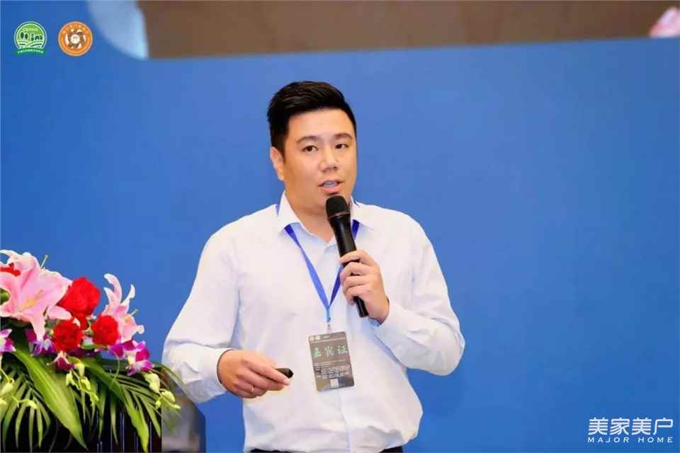 浙江云峰莫干山装饰建材有限公司云峰莫干山科技木国内销售总监嵇凯明进行《我们一直在路上~未曾停歇》主题演讲,嵇总在演讲中讲到,新型全屋定制厂家开始进入木门行业,蚕食能力强劲,众多工厂自我研发能力不足,款式老套,工艺陈旧,无法满足当下消费群体的需求,逐渐被市场淘汰。莫干山科技木始终关注环保命题和消费者需求,融入新颖的设计理念和创新概念,科技助力,创新助力,环保健康,完全满足消费者的安全需求,打造更具竞争力的产品。云峰科技木具有可规模化生产、易采购、损耗小、高端、可定制、个性化、塑造性强的特点。