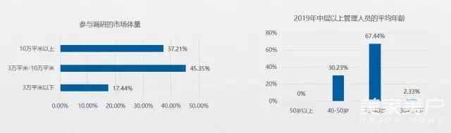 此次参与调查的卖场,市场体量大多在3万-10万平米以上;人员方面,中层以上管理人员的年龄结构近七成平均年龄在30-40岁之间。