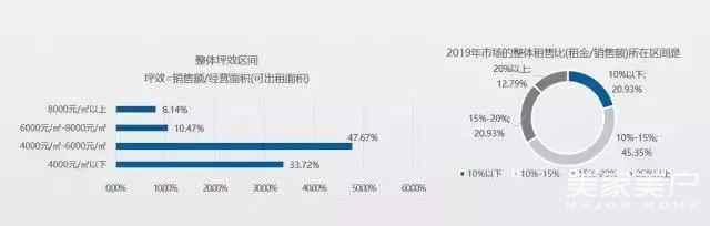近半数卖场坪效区间在4k-6k元/㎡,20.93%的企业租售比低于10%