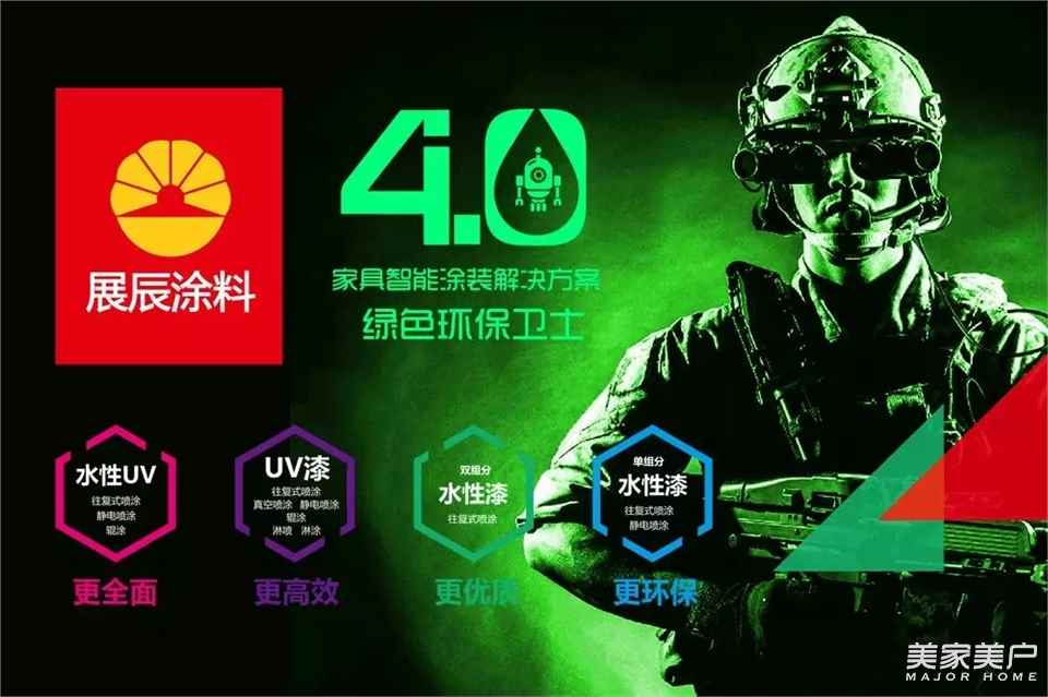 围绕着展辰家具漆所开启的 “家具漆,舍我其谁”、“漆剑下天山”、“来展辰,感受前所未见的涂装效果”,到 “家具涂装十二道风味”、“展辰十八般漆艺”,再到“家具环保涂装一揽子解决方案”、“展辰智能涂装4.0绿色环保卫士”,到“展辰,向环保致敬” “与展辰一起,共创环保未来”,展辰让整个中国家具涂料界眼前一亮。