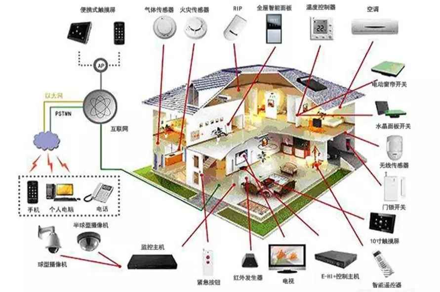 智能家居主要子系统有:智能家居布线系统、家庭网络系统、控制管理系统、窗帘控制系统、照明控制系统、安防监控系统、背景音乐系统、家庭影院与娱乐系统、家庭环境控制系统等。